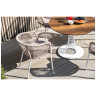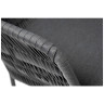 Вместе с этим, в комплектацию входит 4 плетеных стула "Бордо", выполненных с использованием высокопрочного роуп-волокна серого цвета с плетением вида "колос". Стулья имеют размеры 570х620х800 мм и устойчивый каркас из стали, окрашенной порошковой краской в тон материала плетения.