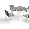 - 4 стула "Марокко" из текстилена nanotex, современного материала для обивки мебели, размером - 575х600х800 мм, каркас белого цвета изготовлен из алюминия, что делает стул прочным и легким. "Венето" обеденный стол из HPL 90х90см, цвет "серый гранит", каркас белый 1шт. 900Х900Х750, "Марокко" стул из текстилена nanotex, алюминиевый каркас, цвет серый 4шт. 575Х600Х800,